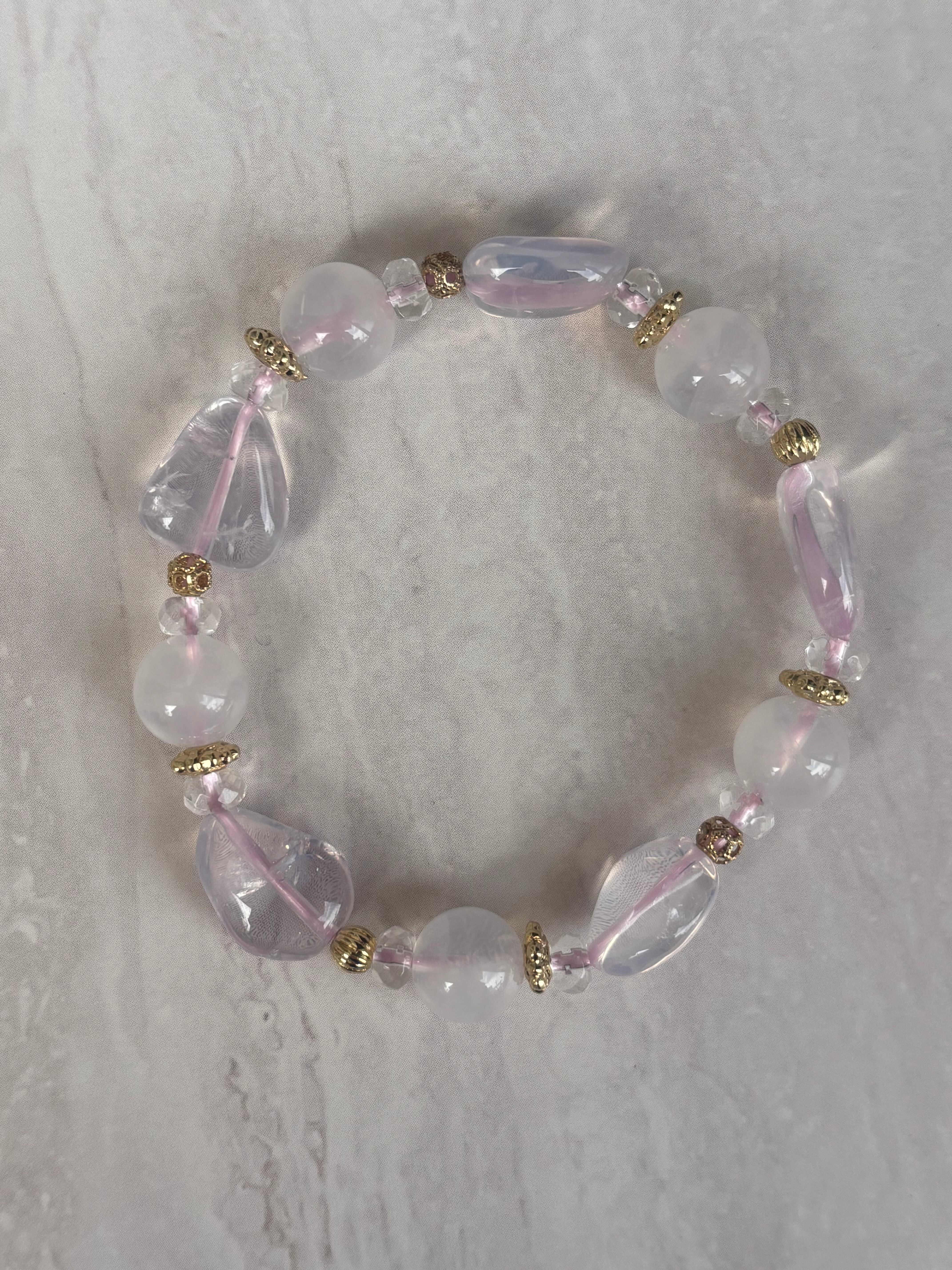 ムーンクォーツ、スコロライト、水晶のブレスレット。