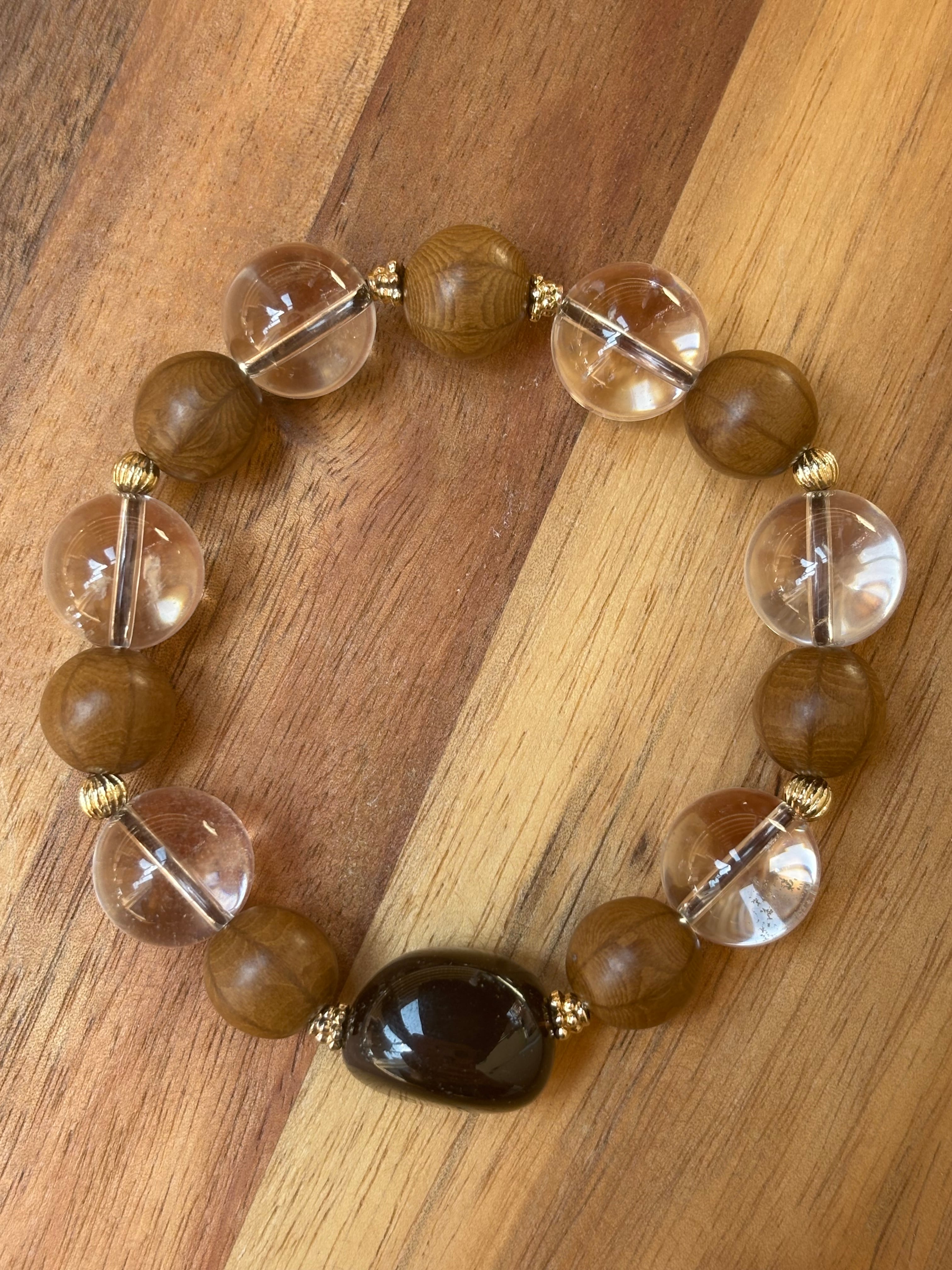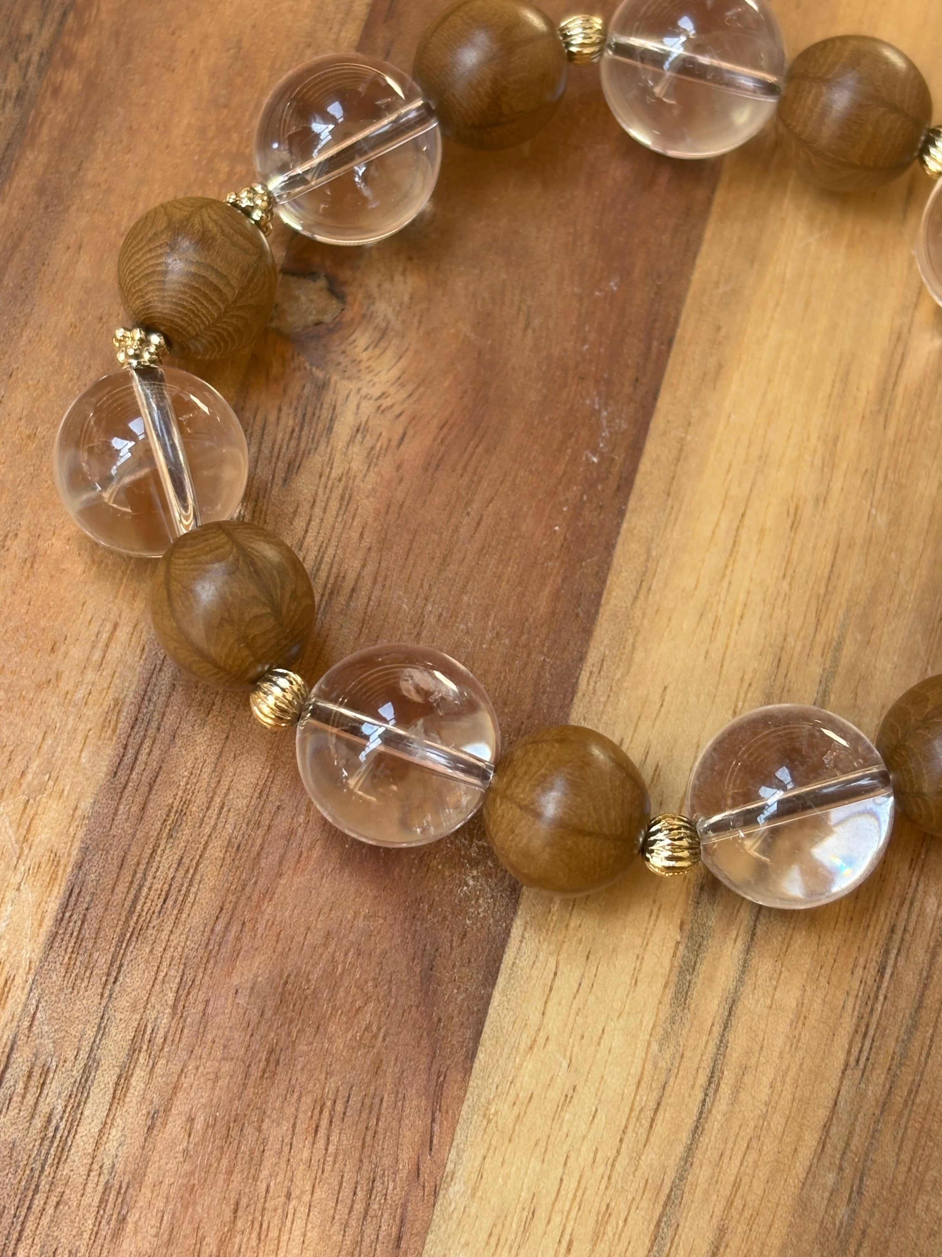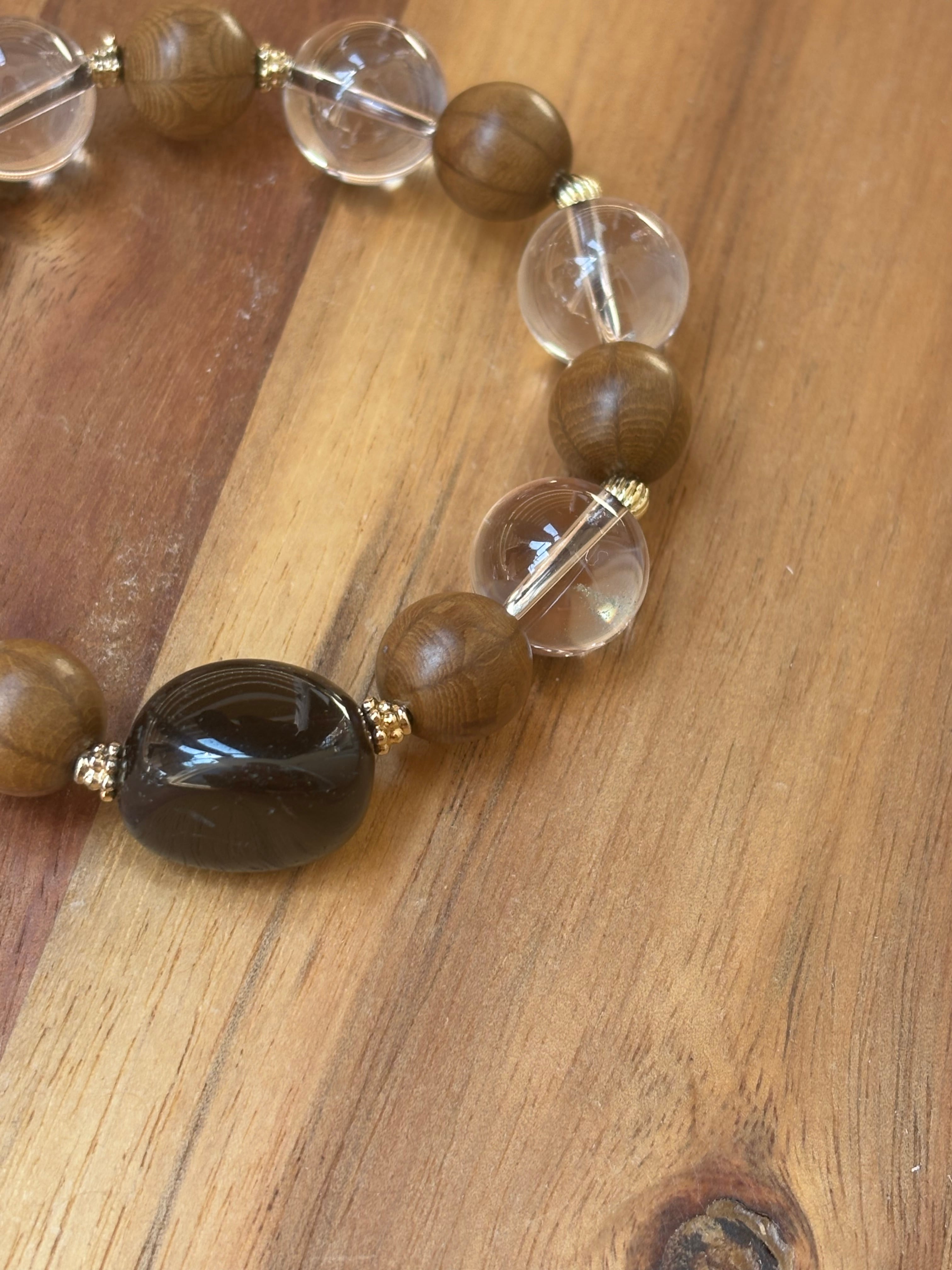 雷水晶は「変化をもたらす「壁を壊し殻を破る」といわている石。六道木の「平静」「落ち着き」と、水晶の「浄化」
